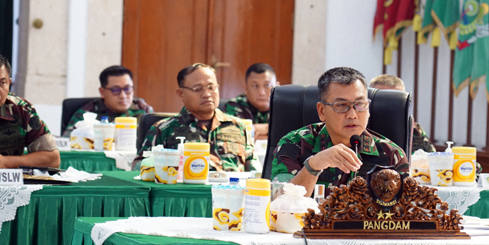 BANDUNG, eljabar.com — Pangdam III/Siliwangi Mayjen TNI Kunto Arief Wibowo, S.I.P., memberikan pengarahan kepada para Komandan Satuan jajaran Kodam III/Slw, termasuk para Dansat yang sedang melaksanakan tugas operasi. Pengarahan melalui zoom meeting, berlangsung di Ruang Silihwangi Kodam III/Slw, Jalan Aceh No. 69 Kota Bandung, Jabar, Kamis (17/03/2022).