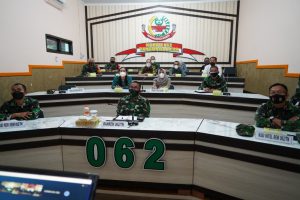 Kegiatan video comperence Pengarahan Kasad Jenderal TNI Andika Perkasa kepada orang tua/wali Catar Akmil TA. 2021 utk melanjutkan seleksi Tk. Pusat. Orang tua/wali Catar Akmil yg hadir mengikuti video conference di Wilayah Korem 062/Tn sebanyak 12 orang.