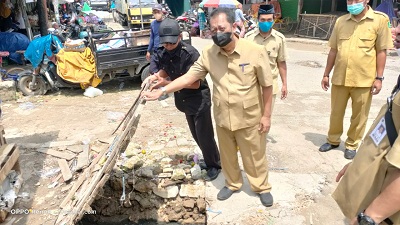 Selain jalur drainase, Dinas Koperasi UMKM dan Perindag Sumenep juga meninjau akses jalan Pasar Anom yang masih perlu adanya perawatan.
