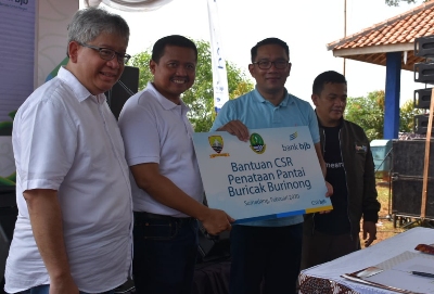 Selain itu, Gubernur menyerahkan bantuan sebagai bentuk apresiasi kepada Dewan Kemakmuran Mesjid (DKM) Al-Muttaqin Kabupaten Sumedang dan bantuan CSR penataan pantai Buricak Burinong.