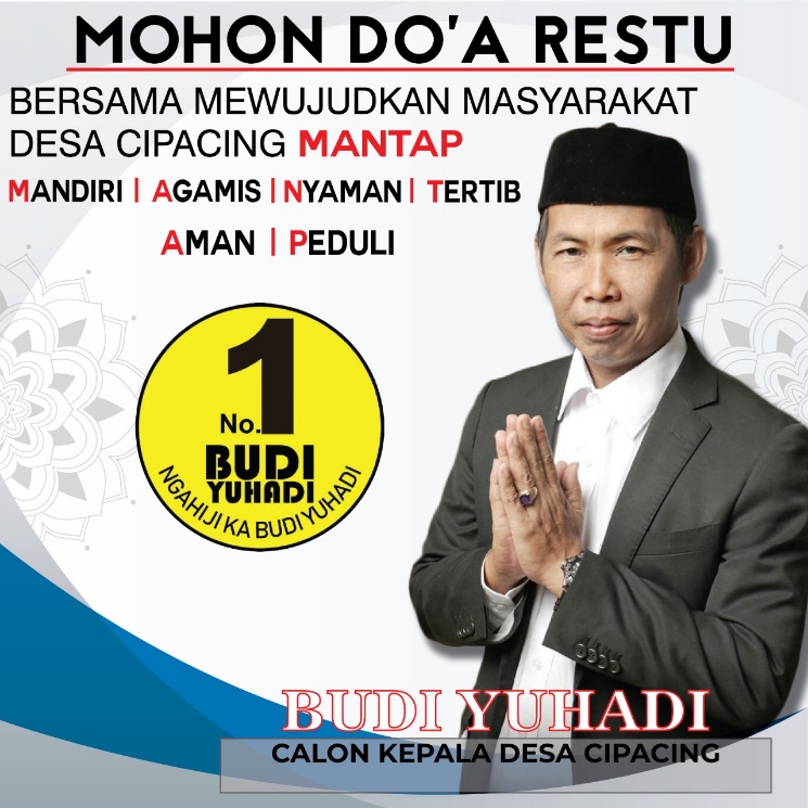 Diketahui, terdapat 5 orang Calon Kades yang akan mengikuti kontestasi politik untuk meraih kursi Kepala Kesa Cipacing. Salah satunya, nomor urut 1 yakni, Budi Yuhadi atau sapaan akrabnya Abuy semakin siap untuk melewati semua tahapan Pilkades hingga hari H pencoblosan mendatang.
