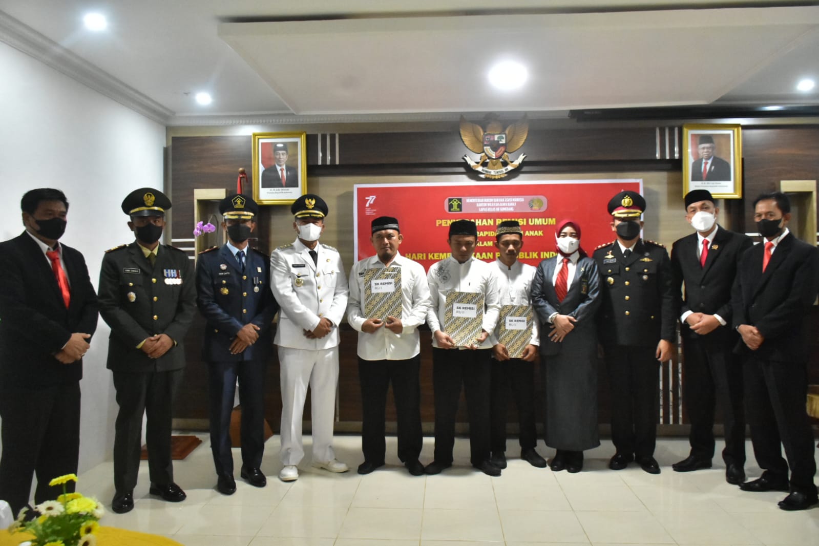 Remisi Umum 17 Agustus secara simbolis diserahkan Wakil Bupati Sumedang Erwan Setiawan kepada tiga orang perwakilan di LAPAS Sumedang, Rabu (17/8).