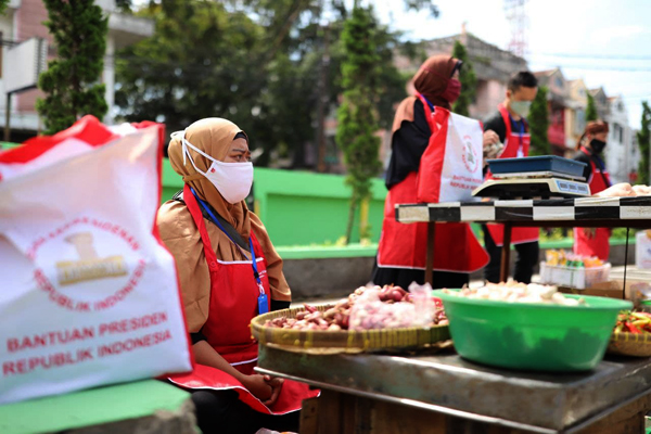 Pedagang di Pasar Sederhana Terima Bantuan dari Presiden Jokowi