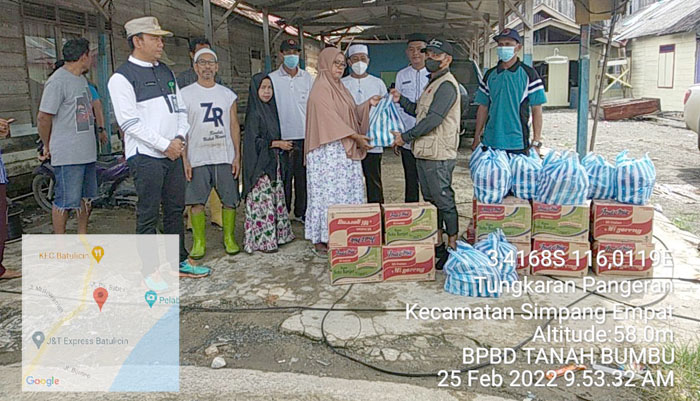 Bantuan diserahkan langsung Kalak BPBD Eryanto Rais melalui Kabid Kedaruratan dan Logistik, Muhammad Faisal dan disaksikan oleh Lurah Tungkaran Pengeran, Kamis (25/02/2022).