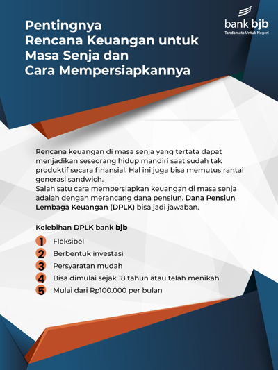 Mempersiapkan simpanan melalui Dana Pensiun Lembaga Keuangan (DPLK) adalah salah satu cara termudah untuk merancang dana untuk masa senja. DPLK merupakan dana pensiun yang dibentuk oleh bank atau asuransi jiwa untuk menyelenggarakan program pensiun iuran pasti (PPIP) bagi perorangan, baik karyawan ataupun pekerja mandiri.