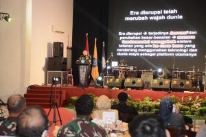Kolonel Inf Arie Tri Hedhianto, lanjut dalam orasinya, bahwa menurut Pembina YSPGJ, di era diskrupsi telah terjadi inovasi dan perubahan-perubahan besar-besaran, secara fundamental mengubah sistem tatanan yang ada ke cara baru yang cenderung menggunakan teknologi dunia maya sebagai kelompok utamanya.
