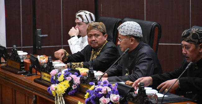 Rapat Paripurna dipimpin langsung Ketua DPRD Kabupaten Sumedang Sidik Jafar dan dihadiri oleh Wakil Gubernur Jawa Barat Erwan Setiawan, Bupati Sumedang Dony Ahmad Munir, Wakil Bupati Sumedang M Fajar Aldila, Forkopimda dan anggota DPRD, Kabupaten Sumedang dan tamu undangan lainnya di Gedung DPRD Sumedang, Selasa (22/4/2025)