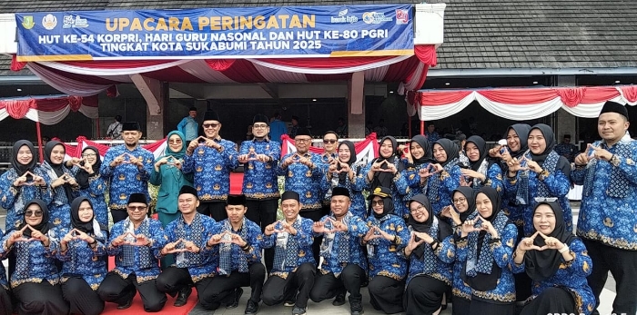 SUKABUMI, eljabar.com — Pemerintah Kota (Pemkot) Sukabumi, menandai momentum penting dengan menggelar Upacara Peringatan HUT Ke-54 Korpri, Hari Guru Nasional, dan HUT Ke-80 PGRI, di Lapang Merdeka, pada Senin, 1 Desember 2025.