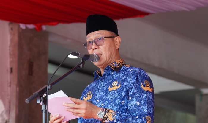 Wali Kota Sukabumi, H. Ayep Zaki, S.E., M.M., hadir sebagai pembina upacara bersama Forkopimda, DPRD, unsur TNI/Polri, tokoh masyarakat, serta pimpinan lembaga pendidikan dan organisasi profesi.