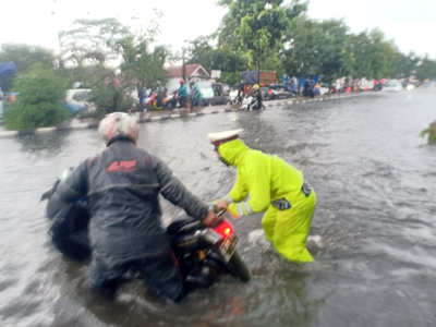 Menurut Kapolsek, genangan yang terjadi disebabkan meluapnya drainase dijalur tersebut karena tidak mampu menampung debit air.