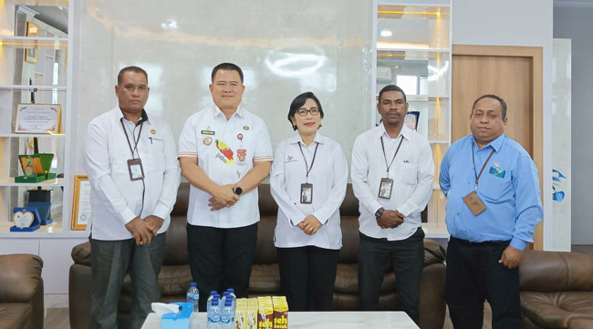 MAYBRAT, eljabar.com — Pj. Bupati Maybrat, Bernhard E. Rondonuwu menerima kunjungan Kepala BPS Provinsi Papua Barat, Ir. Merry M.P, di kantor Bupati Maybrat, Rabu 25 Oktober 2023.