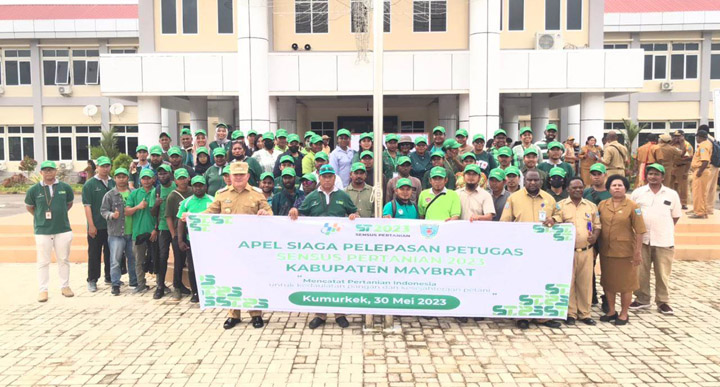Dalam upaya untuk mengumpulkan data dan informasi yang akurat mengenai sektor pertanian, Penjabat (Pj.) Bupati Maybrat, Dr. Bernhard E. Rondonuwu, S.Sos., M.Si., memimpin Apel Siaga dan Pelepasan Petugas Sensus Pertanian 2023 di halaman Kantor Bupati Kabupaten Maybrat, Senin (30/5/2023).