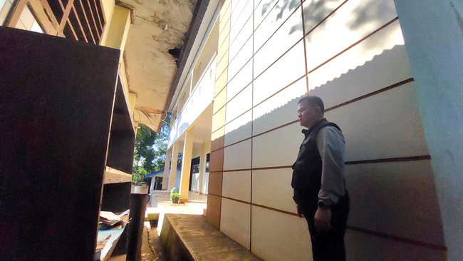 Selama peninjauan, Bernhard mengarahkan para guru untuk merapikan barang-barang rongsokan seperti lemari kayu rusak yang masih tersimpan di koridor sekolah.