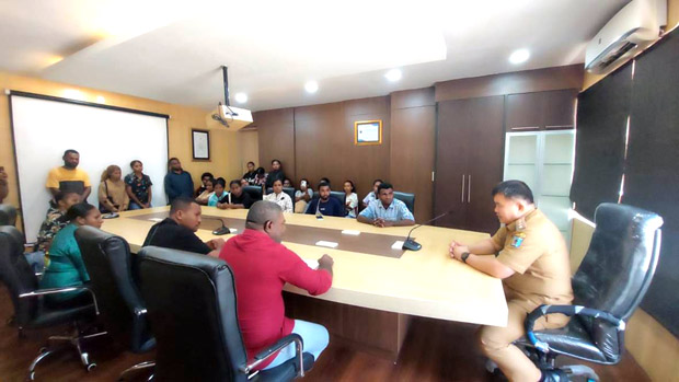 SORONG, eljabar.com — Penjabat Wali Kota Sorong, Bernhard Eduard Rondonuwu, S.Sos., M.Si., memimpin audiensi dengan para pencari kerja (pencaker) Suku Moi di ruang rapat Wali Kota Sorong, Senin (14/10).