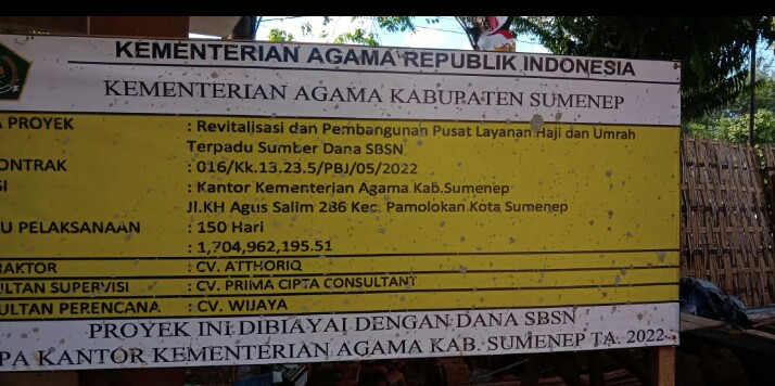 SUMENEP, eljabar.com – Proses Revitalisasi dan Pembangunan Pusat Layanan Haji dan Umrah (PLHU) Terpadu, di kantor Kementrian Agama (Kemenag) Sumenep, Madura, Jawa Timur, menuai polemik.