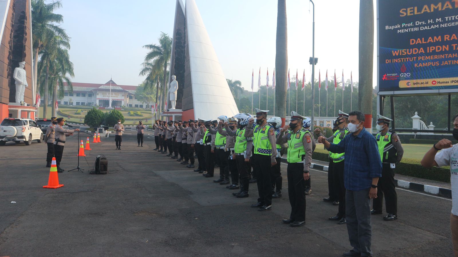 Kapolres Sumedang AKBP Indra Setiawan memimpin langsung pengamanan kegiatan wisuda IPDN tersebut.