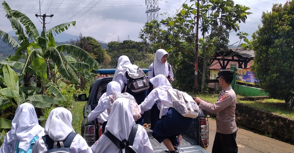 Sumedang,eljabar.com – Polsek Pamulihan Polres Sumedang Polda Jabar membantu antar jemput siswa-siswi dari Desa Cimarias ke SMPN 2 Pamulihan. Senin (03/04/2023). Hal ini dilakukan karena tidak adanya transportasi umum yang tersedia dari Desa Cimarias ke SMPN 2 Pamulihan yang berjarak sekitar 15Km.