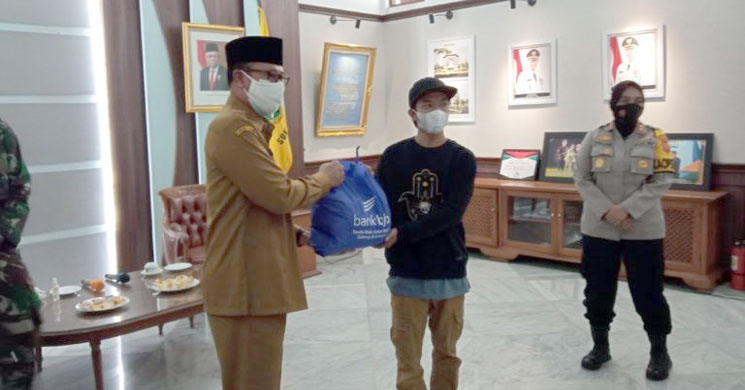 SUKABUMI, eljabar.com — Sebanyak 400 paket sembako diberikan kepada kusir delman, tukang becak dan Pedagang Kaki Lima (PKL) di kawasan Jl. Ir. H. Djuanda, dari Pemerintah Kota Sukabumi bersama Forum Komunikasi Pimpinan Daerah (Forkopimda). Bantuan sembako tersebut diberikan di Balaikota Sukabumi, Senin (19/07/2021).