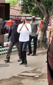 Kunjungan Presiden RI Ir. Joko Widodo ke Kab. Cirebon dan Kuningan dalam rangka peninjauan pelaksanaan Vaksinasi yang dilaksanakan secara door to door di RT. 02 RW. 05 Kampung Pengampaan Kelurahan Kalijaga, SMAN 1 Beber Kab Cirebon