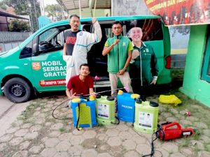“Egga, Ahmad dan kawan-kawan tiap hari lakukan penyemprotan 5 sampai dengan 8 kali penyemprotan dibeberapa wilayah, dari pagi hingga malam,” jelas Kang Erwin.