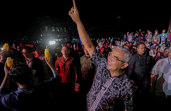 “Sampurasun! Rampes! Sarehat sadayana. Alhamdulillah, malam ini kita bersama-sama merayakan ulang tahun ke-215 Kota Bandung,” seru Farhan yang disambut tepuk tangan meriah warga.