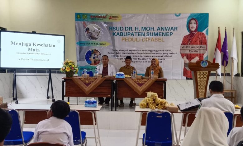 SUMENEP, Eljabar.com – RSUD dr. H. Moh. Anwar Sumenep kembali menunjukkan komitmennya dalam memberikan pelayanan inklusif bagi kaum difabel. Setelah menghadirkan berbagai fasilitas ramah disabilitas seperti blok pemandu (guiding block) dan toilet khusus difabel, kini rumah sakit milik Pemerintah Kabupaten Sumenep itu menggelar penyuluhan kesehatan gratis bagi siswa Sekolah Luar Biasa (SLB) di Kecamatan Saronggi.