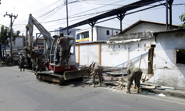 Satpol PP Tertibkan 5 PKL dan Bangunan di Kecamatan Bojongloa Kidul dan Kecamatan Panyileukan