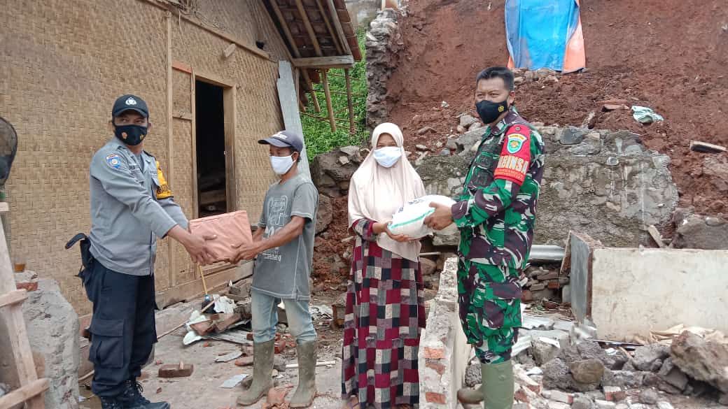 Bersama Kepala Desa,bhabinkamtibmas,para ketua RT dan ketua RW serta warga masyarakat sekitar ,serka Solihin Babinsa Desa sirnamulya bahu membahu meringankan korban longsor.Tanah yang longsor Akibat intensitas curah hujan cukup tinggi sehingga mengakibatkan terjadinya longsor TPT dengan tinggi 5 Meter,panjang 8 meter Menimpa rumah milik bapak oyib.kami juga bersama bhabinkamtibmas,mengamankan barang barang milik bapak Oyib,dan memindahkan dulu keluarga bapak Oyib kepada runah saudaranya serta memberikan sembako alakadar nya buat meringankan beban bapak oyib.ucap serka solihin