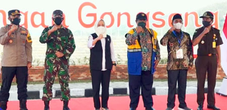 Pelaksanaan impounding Bendungan Gongseng diselenggarakan dengan menerapkan protokol kesehatan Covid-19 secara ketat.