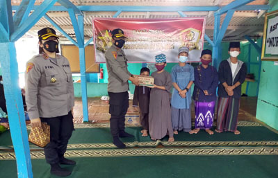 Selain mengadakan baksos dan doa bersama agar covid-19 segera berlalu dari negeri ini, juga melakukan sosialisasi tentang penerapan protokol kesehatan (Prokes) dan Polri sebagai sahabat anak.
