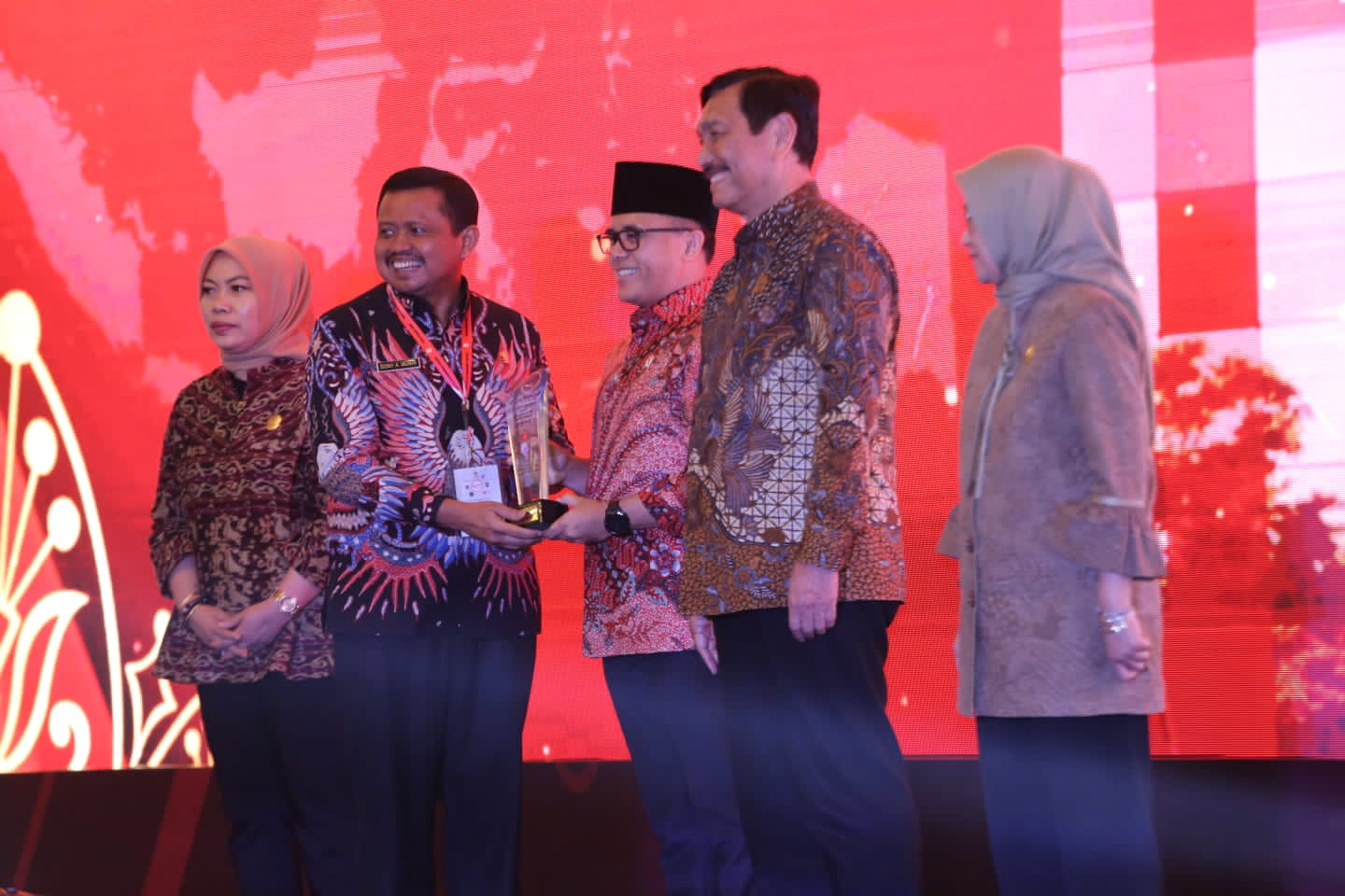Bupati Sumedang Dony Ahmad Munir menerima langsung penghargaan yang diberikan langsung oleh Menteri PANRB Abdullah Azwar Anas, didampingi Menteri Koordinator Bidang Kemaritiman dan Investasi Luhut Binsar Pandjaitan.