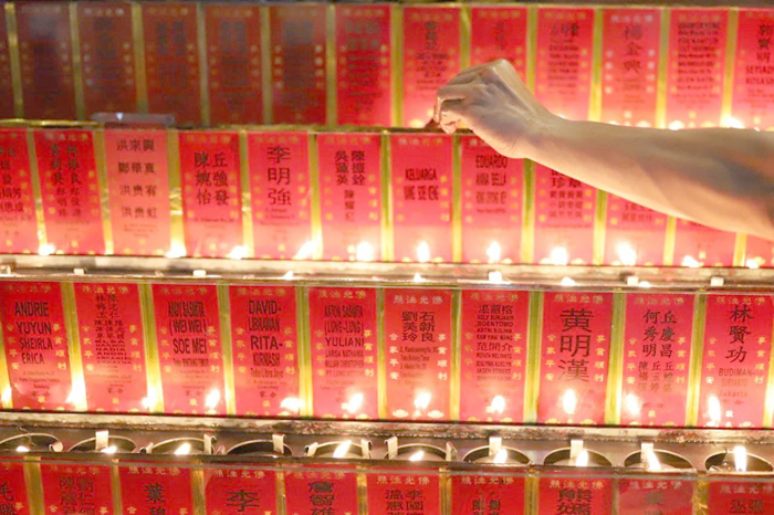 “Berlangsung lancar (persiapan imlek). Umat mulai berdatangan. Tapi kalau lilin baru menyala pukul 11 malam,” ucap Asikin, pengelola vihara.