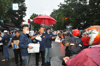 Dalam kondisi cuaca masih gerimis, semangat Pengurus dan Anggota PWI Kota Bandung serta IKWI Kota Bandung tampak begitu besar dan antusias mendistribusikan takjil bahkan hingga memasuki waktu adzan magrib berkumandang.