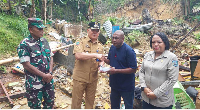 SORONG, eljabar.com — Penjabat Wali Kota Sorong, Dr. Bernhard E. Rondonuwu, S.Sos., M.Si., terus menunjukkan semangat juangnya dengan menyalurkan bantuan dana stimulan bagi warga terdampak longsor di HBM Kelurahan Remu Utara, Distrik Sorong Kota, Selasa (3/9).