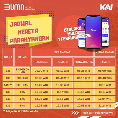 Dicky menambahkan, KA Parahyangan yang resmi dioperaikan pada 1 Februari 2025, kini lebih mengakomodir masyarakat yang bepergian dari Bandung menuju Jakarta.