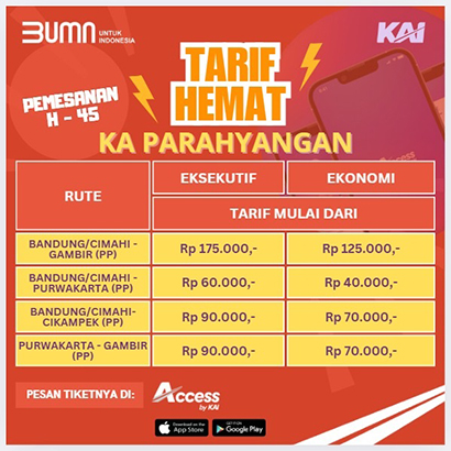 “Kami berupaya memberikan kemudahan bagi pelanggan yang ingin bepergian dengan tarif yang lebih fleksibel, sehingga perjalanan dengan Kereta Parahyangan menjadi lebih terjangkau bagi berbagai kalangan masyarakat,” jelas Dicky.