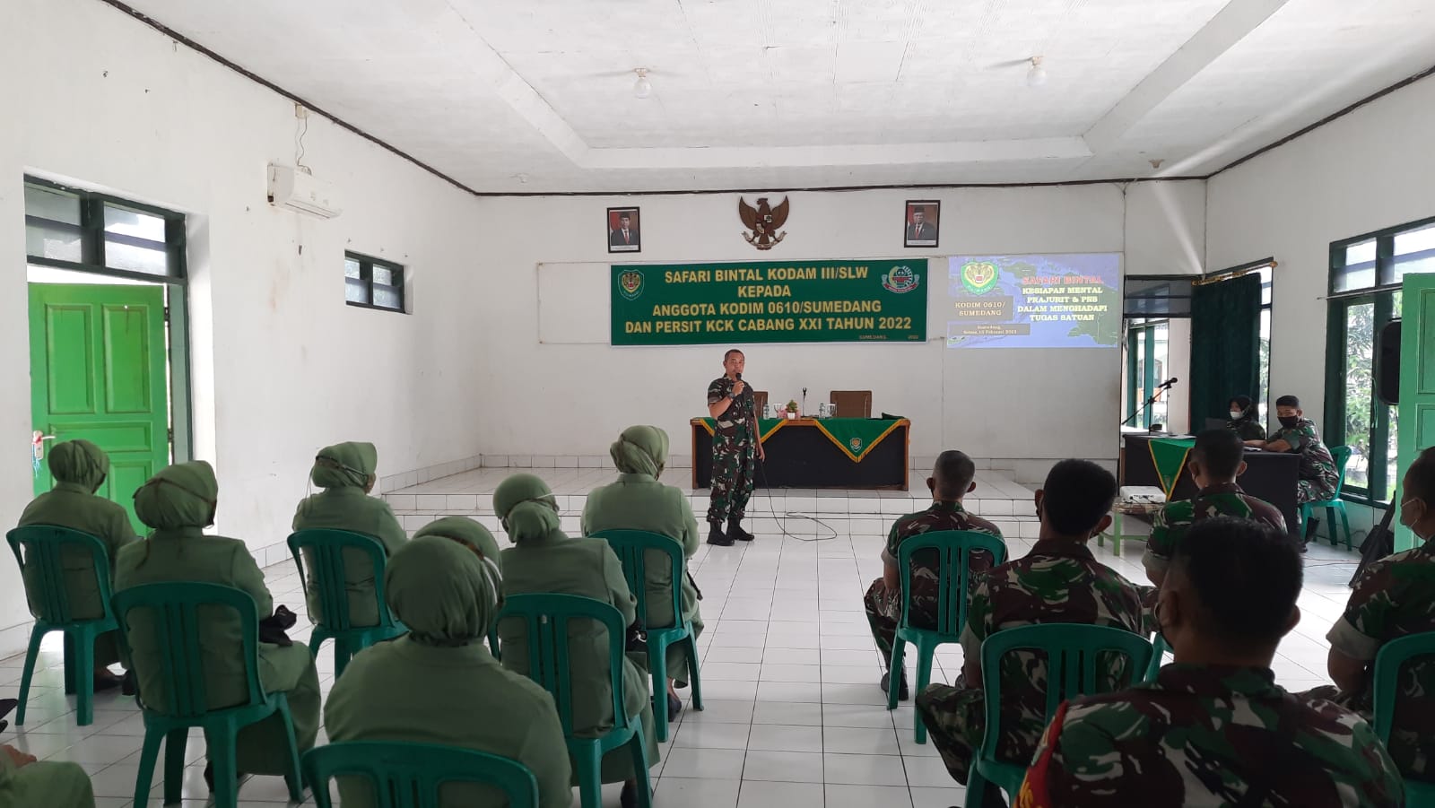 SUMEDANG,eljabar.com – Bertempat di Aula Makodim 0610/Sumedang dilaksanakan kegiatan safari bintal Kodam lll/Siliwangi kepada anggota Kodim 0610/Sumedang dan Persit KCK Cabang XXI Tahun 2022 dari Tim Bintal Kodam Ill/Siliwangi yang dipimpin oleh Mayor inf H.Yusdhi GZ.S.Ag , Selasa (15/02/2022).