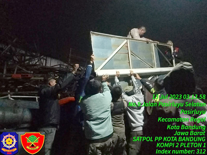 Kepala Seksi Penertiban Umum Satuan Polisi Pamong Praja (Satpol PP) Kota Bandung R. Satriadi Buana mengungkapkan, penertiban dilaksanakan pada Rabu 12 Juli 2023 sekitar pukul 21.30 WIB. Penertiban sengaja dilaksanakan malam hari agar tidak menimblukan kemacetan.