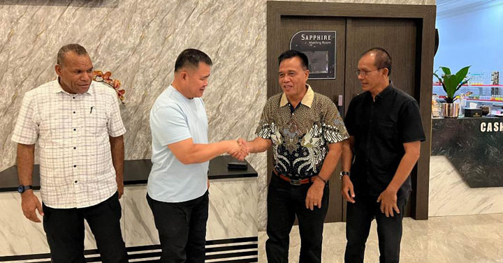 SORONG, eljabar.com — Rapat koordinasi antara Penjabat (Pj) Bupati Maybrat, Dr. Bernhard Eduard Rondonuwu S.Sos M.Si, didampingi Engelbertus Turot, SP. M.Si (Asisten II Setda Kabupaten Maybrat) dan James Awaeh S.Sos Pimpinan RRI Wilayah Sorong beserta Yuda, Pengurus RRI Sorong diadakan di Hotel Panorama Rylic Sorong, untuk membahas peningkatan layanan informasi di Kabupaten Maybrat, Jumat 21 Juni 2024.