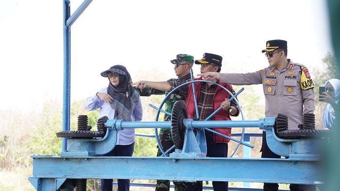 Tinjau Bendung Cariang Ujungjaya Pj Bupati Herman Didampingi Jajaran Forkopimda