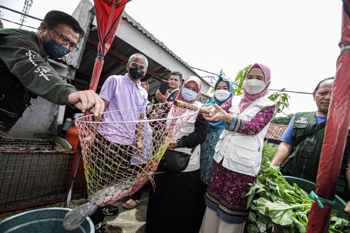 Ketua TP PKK Kota Bandung, Yunimar Mulyana menyampaikan, tak hanya panen lele, masyarakat pun memanfaatkan lahan dan permukaan ember dengan menanam kangkung.