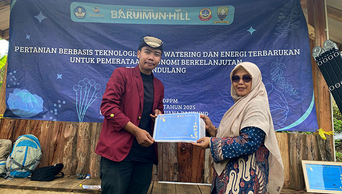 “Pelatihan ini diharapkan mampu memberikan manfaat nyata bagi Desa Sindulang, khususnya bagi kelompok tani pengelola Baurimun Hill. Penerapan teknologi seperti smart watering dan  pembuatan PLTS  Atap solar cell ditujukan untuk meningkatkan produktivitas sekaligus memastikan penggunaan sesuai prosedur sehingga dapat dimanfaatkan secara efektif dan efisien.” ujar ketua pelaksana, Ir. Nurwathi, MT., Jum’at 22 Agustus 2025.