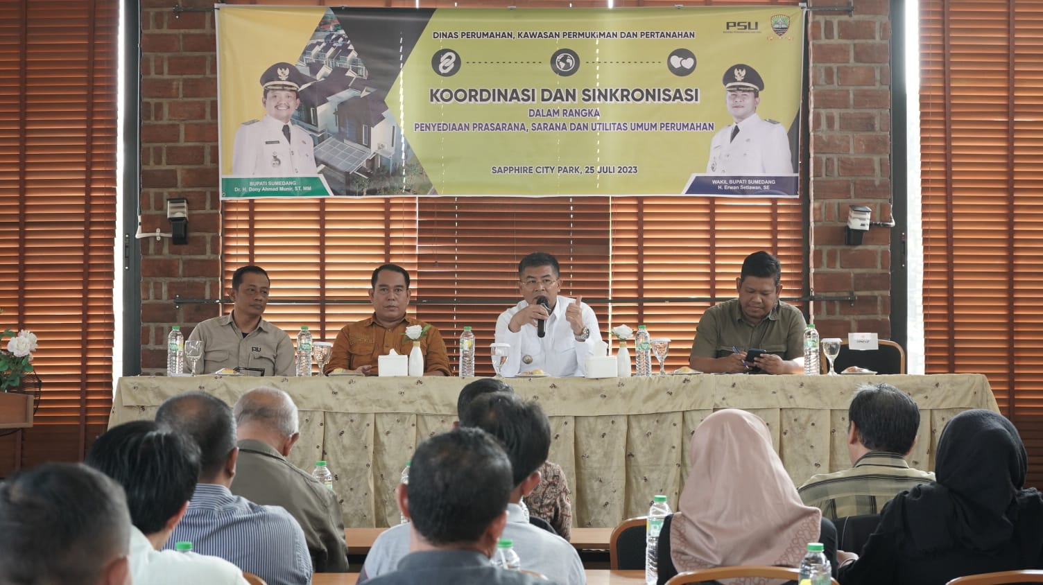 Demikian ditegaskan Wabup Erwan saat membuka acara Koordinasi dan Sinkronisasi dalam rangka Penyediaan Prasarana, Sarana dan Utilitas Umum Perumahan yang diinisiasi Dinas Perumahan Kawasan Permukiman dan Pertanahan (Perkimtan) Kabupaten Sumedang, di Sapphire City Park, Selasa (25/7).