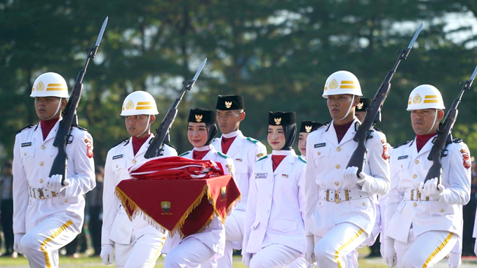 Upacara Penurunan Bendera Merah Putih berlangsung secara tertib dan khidmat.