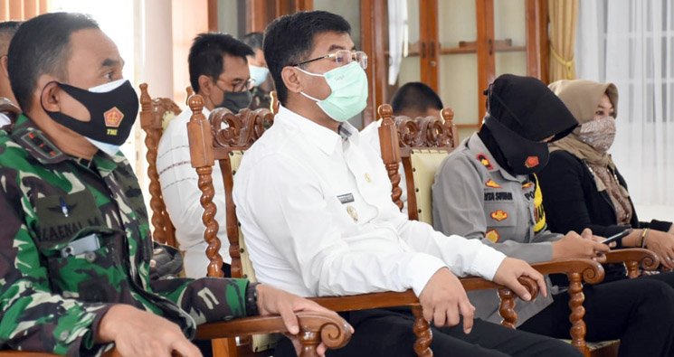 SUMEDANG, eljabar.com — Wakil Bupati Sumedang Erwan Setiawan bersama Forkopimda mengikuti Rakor Virtual Sinergitas Kebijakan Pemerintah Pusat dan Daerah dalam Pelaksanaan Regulasi Omnibus Law, di Gedung Negara, Rabu (14/10/2020).