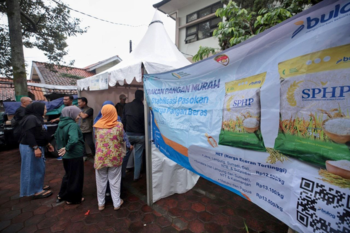 Bazar murah menyediakan berbagai komoditas kebutuhan pokok, mulai dari beras SPHP hasil kerja sama dengan Bulog, minyak goreng, telur, sayuran, bawang merah, dan bawang putih.