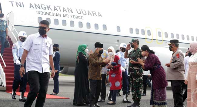 BANDUNG, eljabar.com — Wakil Presiden Republik Indonesia (Wapres RI) Prof. Dr. KH. Ma’ruf Amin, dan Ibu Hj. Wury Ma’ruf Amin serta rombongan melaksanakan kunjungan kerja ke wilayah Kodam III/Siliwangi. Kedatangan Wapres RI disambut langsung Pangdam III/Siliwangi Mayjen TNI Kunto Arief Wibowo, S.I.P., di Bandar Udara Internasional Husein Sastranegara, Jalan Cicendo Kota Bandung, Jabar, Selasa (22/03/2022).